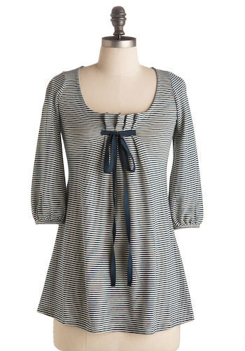 We love this flowy striped shirt available at Mod Cloth. The stripes are subtle and the bow and peasant style sleeves are just darling! This top makes it easy to wear the nautical look without going overboard!